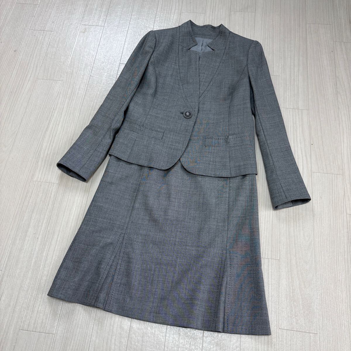 > レリアン Leilian レディース スカートスーツ 上下セット ウール シルク混 毛 絹 グレー 日本製 サイズ9 美品