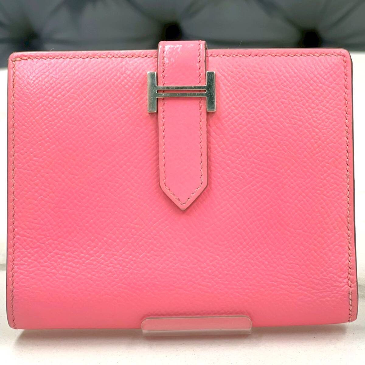 - エルメス ベアンコンパクト エプソン 折り財布 ピンク X刻印