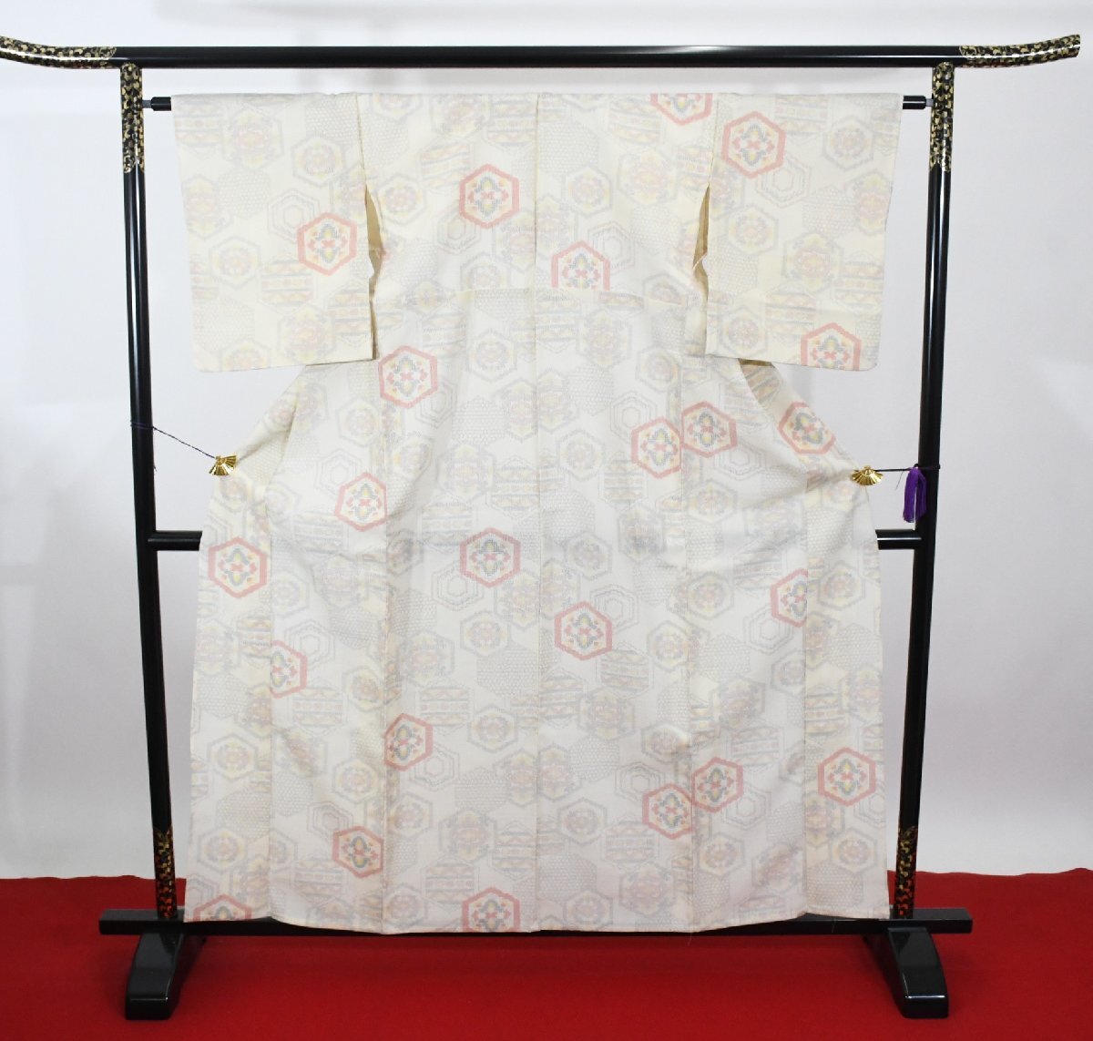 > 紬 つむぎ 単衣 亀甲 吉祥文様 身丈154cm 裄丈64cm ★着物 pb-3731 桜庭呉服店