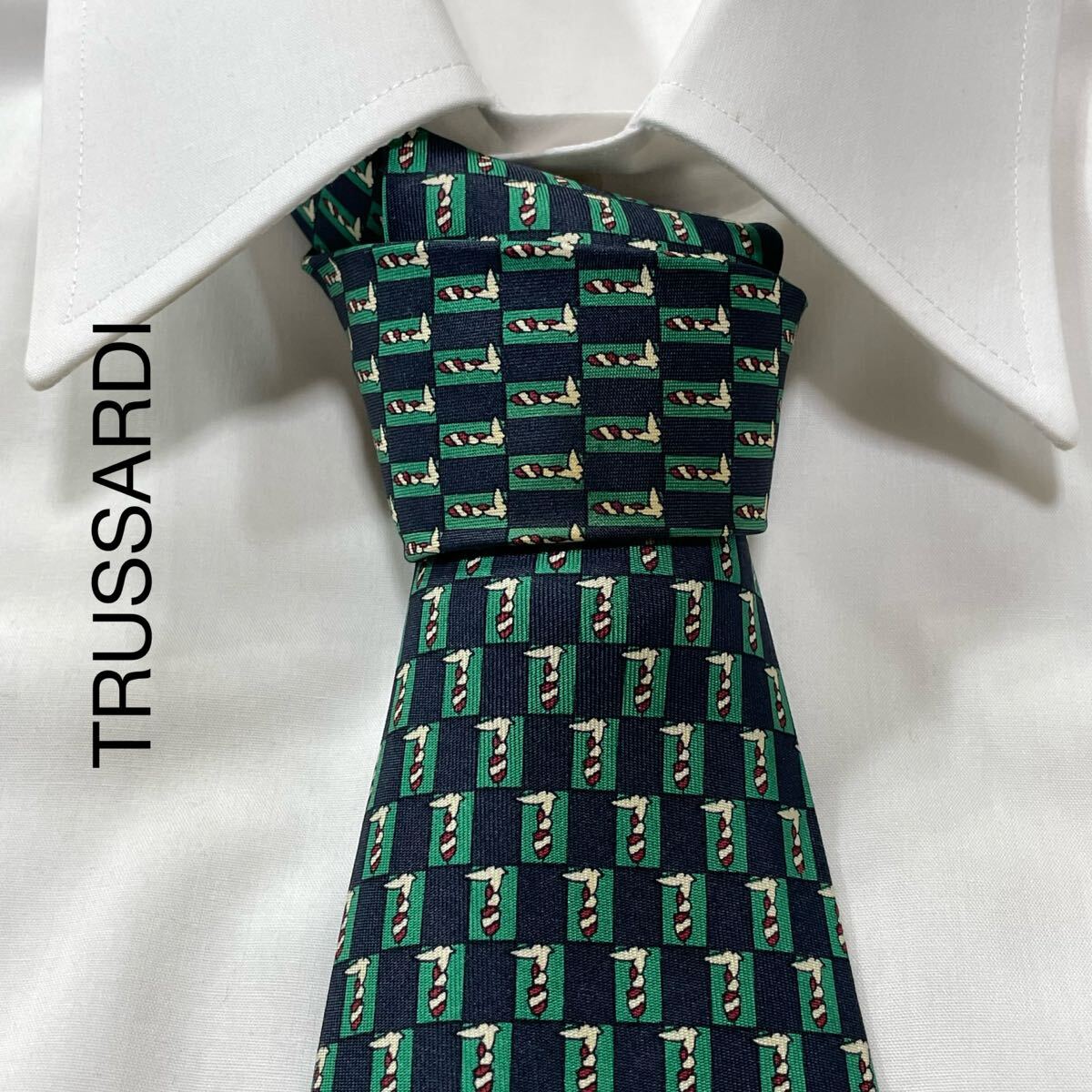 - TRUSSRDI トラサルディ ロゴ タイル柄 シルク ネクタイ イタリア製 ネイビー グリーン ワイン ホワイト TG1899
