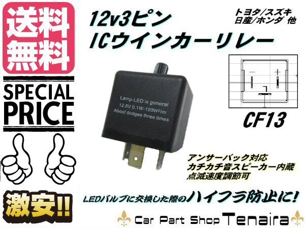 > 12V 3ピン ウインカー リレー CF13 抵抗不要 カチカチ音 LED アンサーバック ワンタッチウインカー 点滅速度調整 ハイフラ防止 送料無料/4