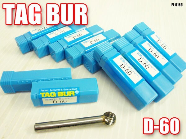> D-60 10本まとめて TAG BUR 超硬ロータリーバー 刃径:約9mm 全長:約53mmシャンク径:約6mm ◇FJ-0165