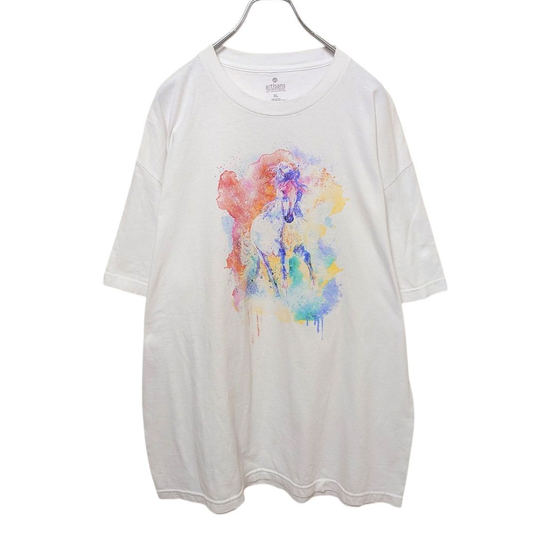 - 【artisans】 水彩画 馬 アートアニマルTシャツ S-1807