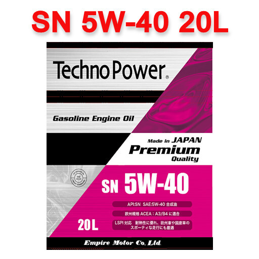 - 【日本製】TP-SN5W40-20 Techno Power テクノパワー 合成油 SN 5W40 20L ACEA:A3/B4取得 ガソリンエンジンオイル