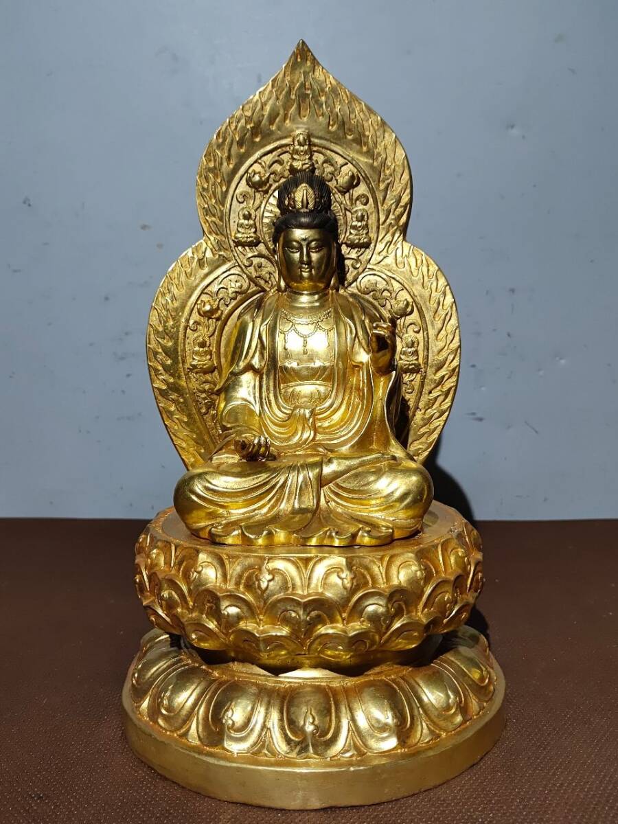 > 仏像 清代 旧蔵 純銅金の老仏像【観音菩薩】 チベット古寺 銅製 銅琉金 唐物 收蔵品 時代物 古美術 古置物 希少珍品 供養品 文房具6.11