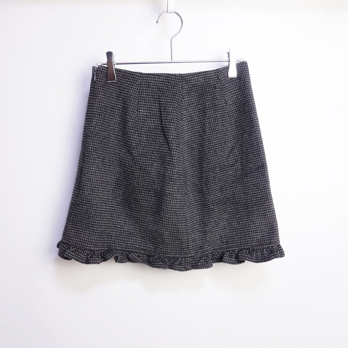 - 美品 titty&Co. 千鳥格子フリルミニスカート レディース 裏地付き Aライン 秋冬 Sサイズ グレー LA36