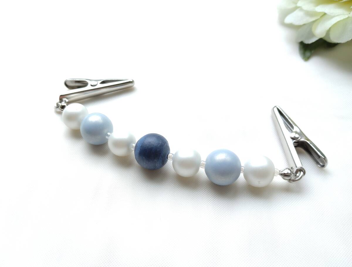 - ネイビーコットンパールのストールクリップ ショール留め ストールホルダー