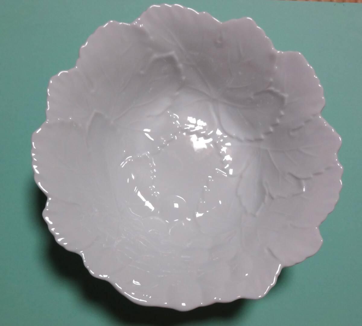 > 数回使用!白い大きな素敵なサラダボール(ブドウ柄)Nippo China NEW WHITE、直径28㎝