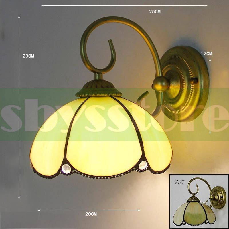 - 01 ヨーロピアン風 ヴィンテージ ガラス壁灯 ティファニー風 カラフルガラスランプ 田舎風 ミラー前ランプ