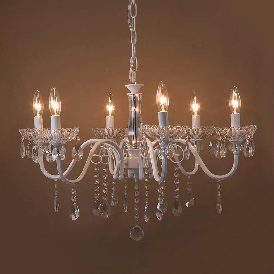 - シャンデリア 6灯 LED対応 E12 天井照明 吊り下げ シーリングライト 白 ホワイト クリスタルガラス 豪華 ゴージャス シャンデリア電球 付属