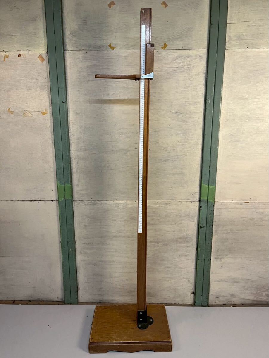 - 160cmまで 昭和レトロな味わいの古い木製身長計 測定器 学校 教材 古家具 古道具 スケール ビンテージ 身長計 帽子掛け コートハンガー