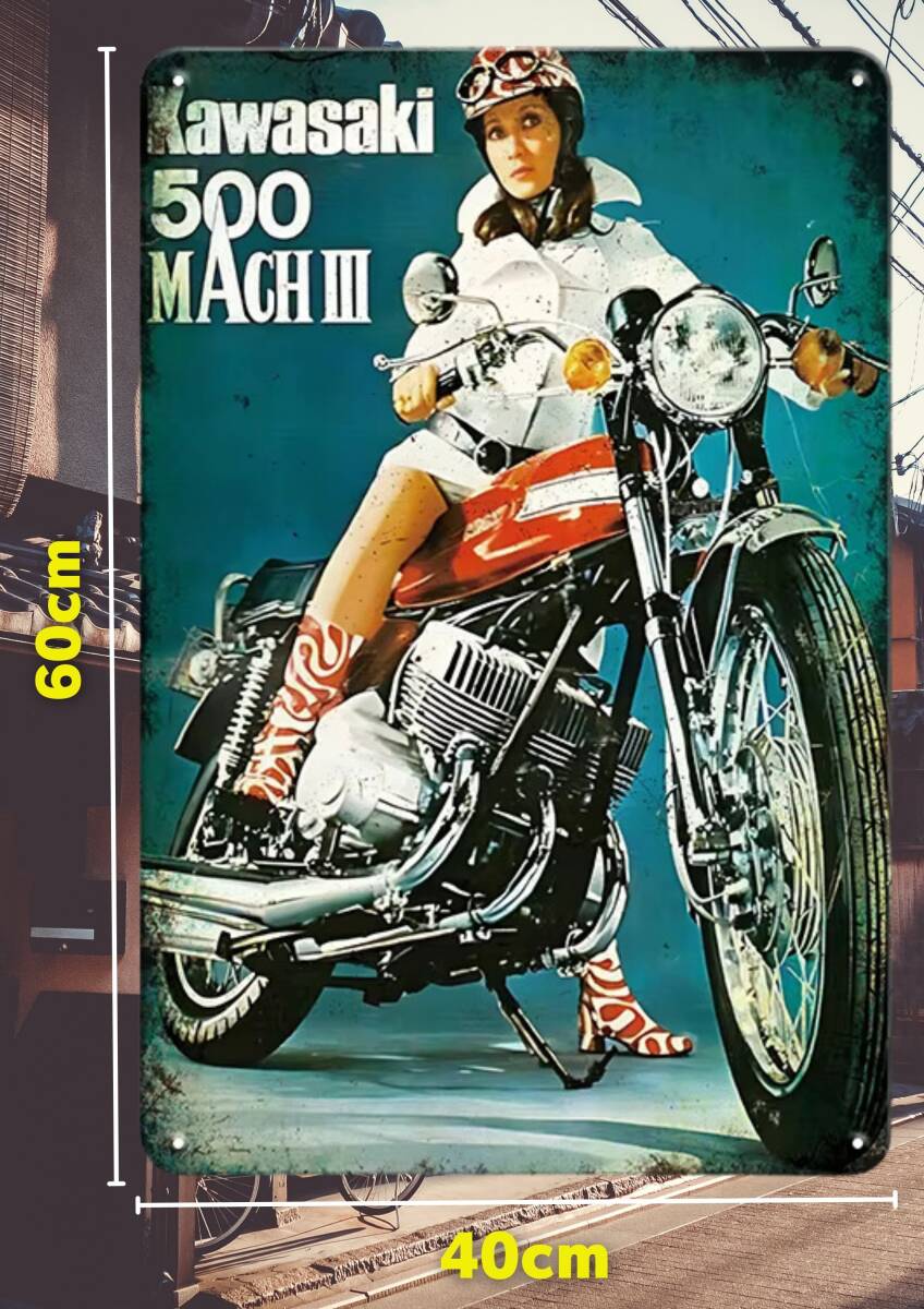 - 大型60cm カワサキ500 復刻レトロ看板!! 新品・送料無料