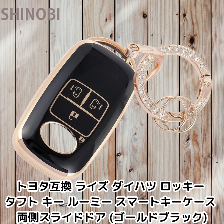 > トヨタ互換 ライズ ダイハツ ロッキー タフト ルーミー スマートキーケース キーカバー 両側スライドドア (ゴールドブラック)