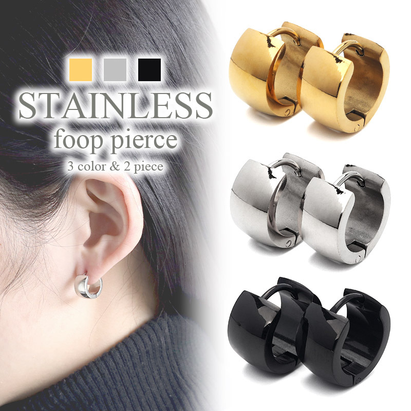 - (シルバー) フープピアス 小さめ 小ぶり ステンレス ピアス イヤリング 18K GP gold 2点セット 両耳用