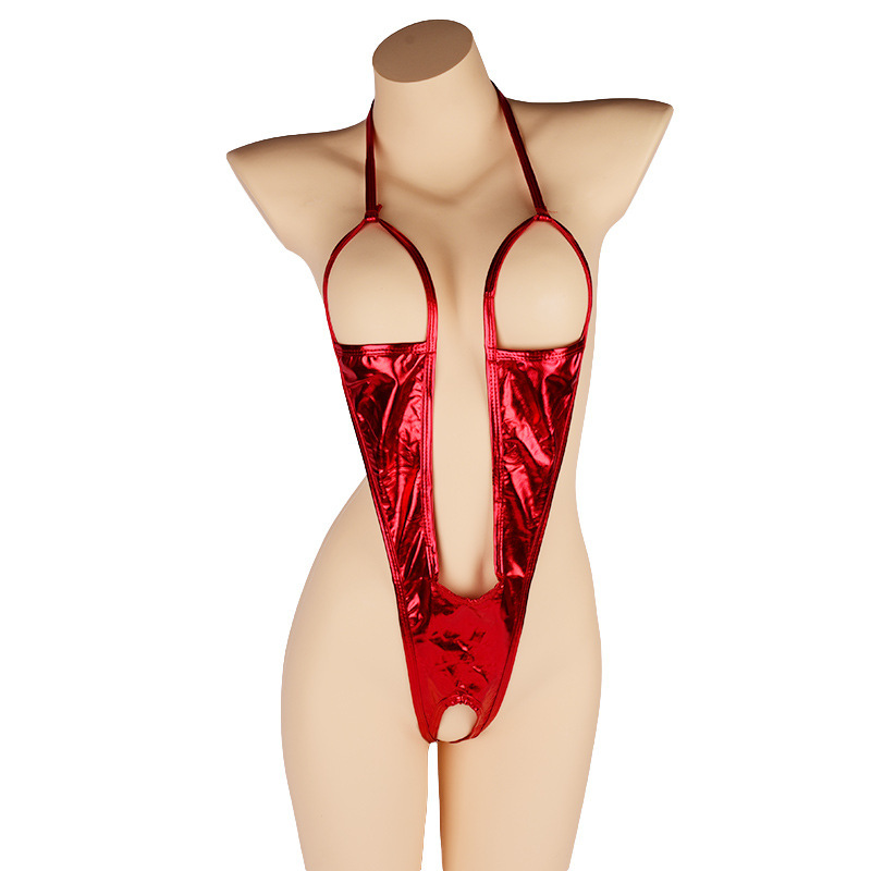- 新入荷 超セクシーセクシー 赤 メタリック カップレス クロッチレス オープンクロッチ Tバック ワンピース 水着お色選択可
