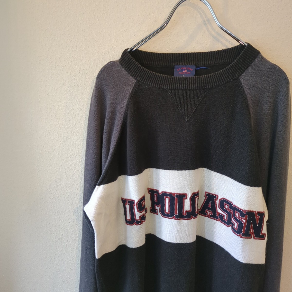 - US POLO ASSN ポロアッスン カットソーニット ラグラン グレー ブラック /Y3735