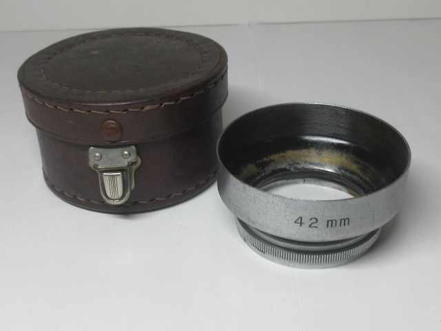 - ★42mm・メタルフード★丸型・本革ケース付き・カメラパーツ★骨董・レア・ビンテージ・昭和レトロ・アンティーク・コレクション★
