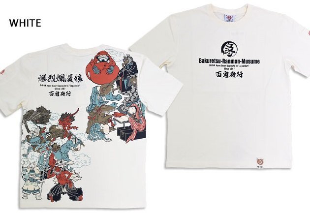 > 半袖Tシャツ「妖怪 百鬼夜行」◆爆烈爛漫娘 ホワイト Mサイズ(サイズ40) RMT-342 和柄 和風 エフ商会 efu