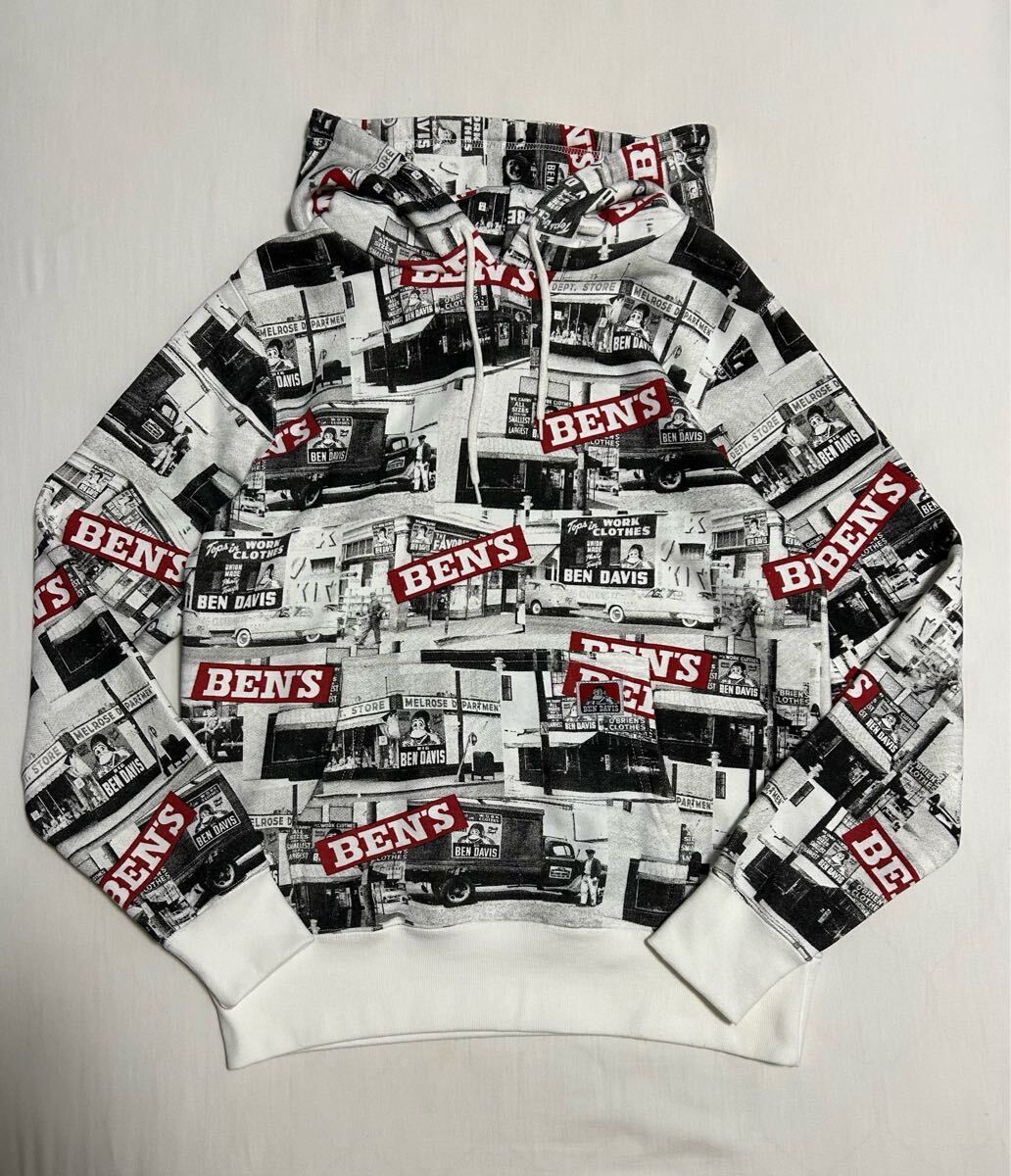 > BEN DAVIS ベンデイビス 総柄 プルオーバー スウェット パーカー フーディー ロゴ プリント M 白 ベンデービス スエット