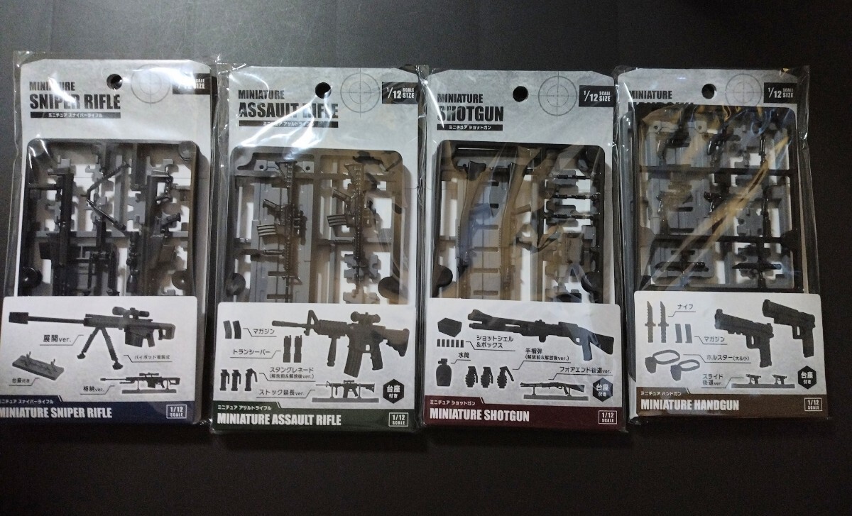 - セリア ミニチュア 1/12スケール 銃 4点セット スナイパーライフル アサルトライフル ショットガン ハンドガン