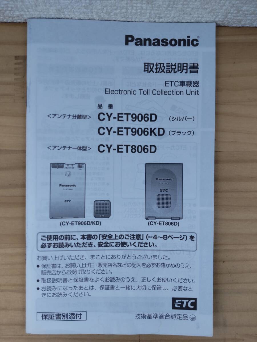 - B-346★送料無料★ETC車載器/取扱説明書★Panasonic/CY-ET906D/CY-ET906KD/CY-ET806D(検索用)新スプリアス規格対応/アンテナ分離型