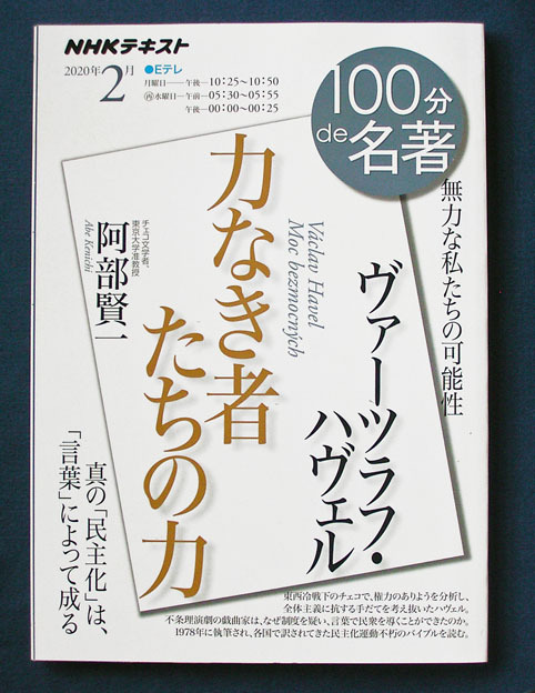 - 100分de名著 「ヴァーツラフ・ハヴェル;『力なき者たちの力』」 ◆阿部賢一(NHK出版)2020年2月