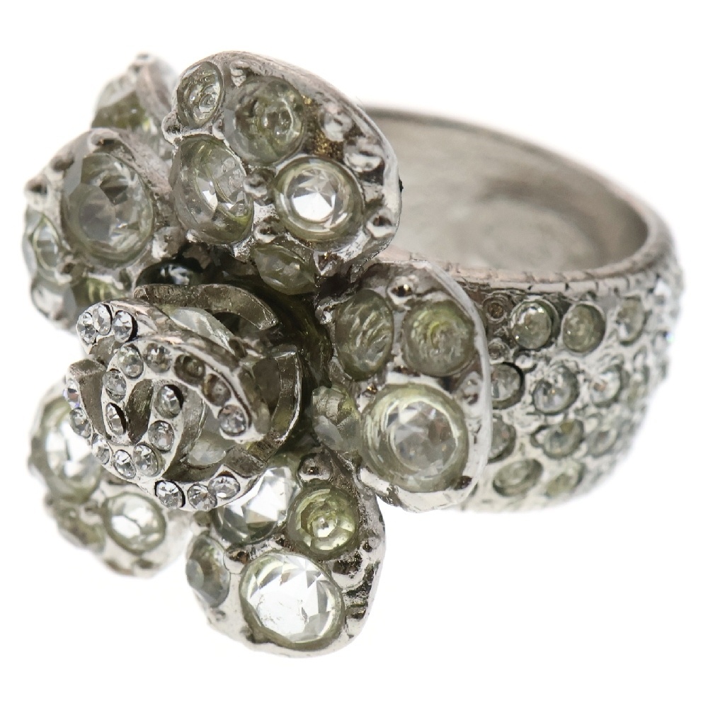 - CHANEL シャネル ココマーク フラワーモチーフ ラインストーン メタル シルバー リング 指輪 03A アクセサリー