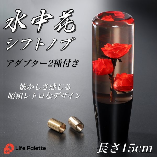 > 水中花 シフトノブ 汎用 15cm 薔薇 バラ 当時物 トラック野郎 旧車 街道レーサー デコトラ ハコスカ 日野 ケンメリ クリスタル ロング 赤