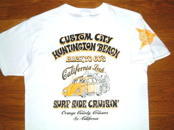背中に大きくメインモチーフの【カスタムカー(ビートル)】が、
