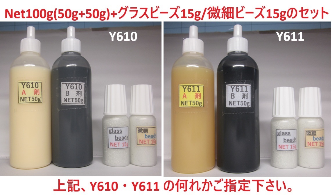 > ☆接着剤【送料込み】アクリル系接着剤NET100gグラスビーズ15g+微細ビーズ15g☆Y610/Y611黒S/Y600の何れか