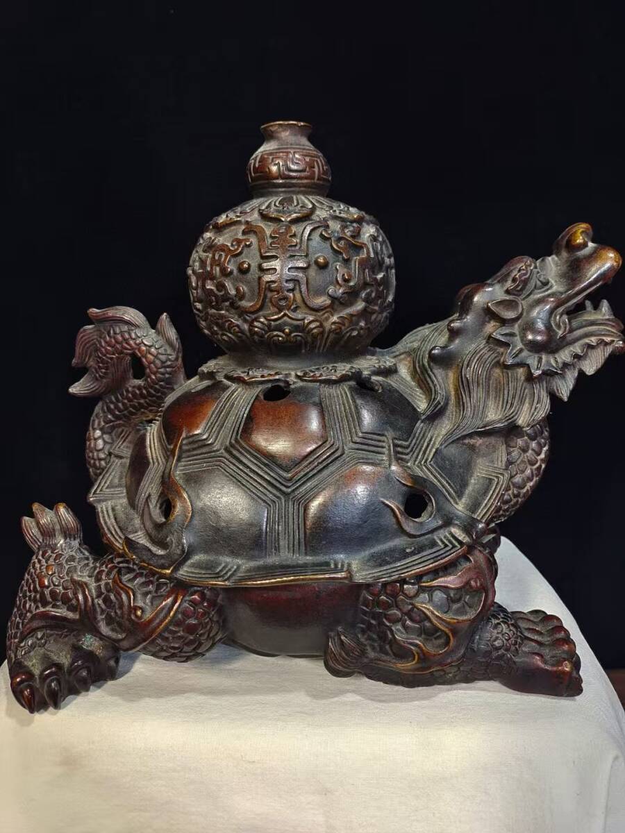 - 仏像 清代 旧蔵 チベット古寺 老銅胎鎮宅の宝 『龍亀福寿薫炉』瑞祥の霊 銅製 唐物 收蔵品 時代物 古美術 古置物 希少珍品 供養品 文房具