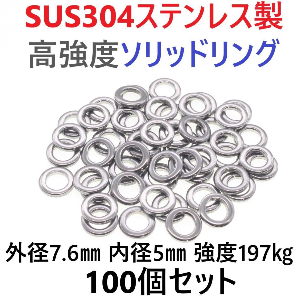 > 【送料150円】最強素材! SUS304 ステンレス製 高強度 ソリッドリング 7.6mm 100個 打ち抜きリング 長時間研磨 ジギング メタルジグ