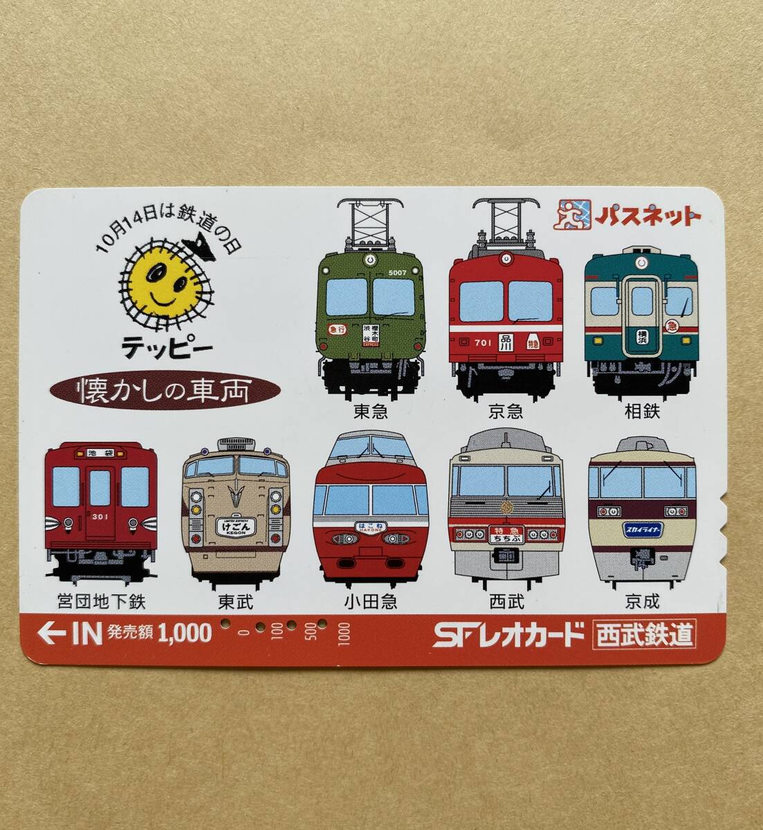 - 【使用済】 パスネット 西武鉄道 懐かしの車両 イラスト 10月14日は鉄道の日 テッピー
