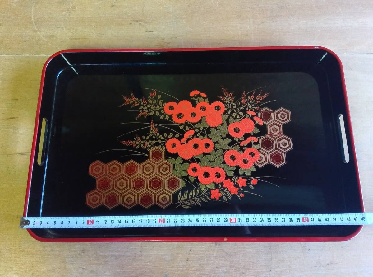 - 25061604 昭和レトロ 花柄お盆長方形 未使用品 コレクション お盆 大花柄