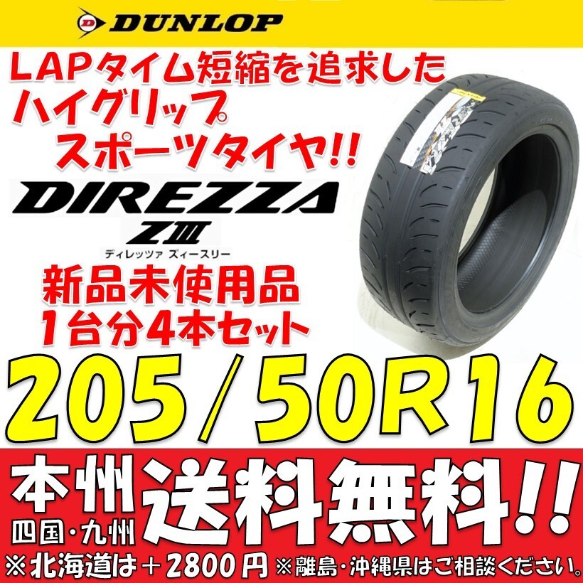 - 205/50R16 87V ダンロップ ディレッツァZⅢ 正規品 新品4本セット 即決価格◎送料無料 ショップ 個人宅OK DIREZZA Z3 ハイグリップタイヤ