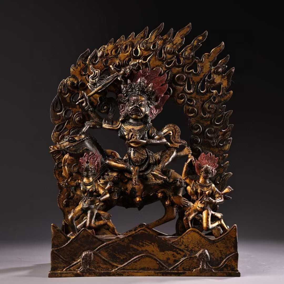 - 仏像 清代 旧蔵 チベット古寺 老銅 泥金 蔵伝吉祥天母 古仏像 銅製 銅琉金 唐物 收蔵品 時代物 古美術 古置物 希少珍品 供養品 文房具6.17