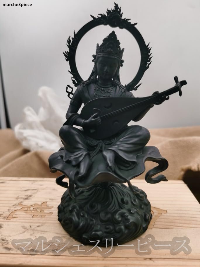 - 仏像 置物【弁財天】15cm 学問・芸術の神様 開運七福神 琵琶持ち弁才天半跏像 諸天神(べんざいてん) (古色)