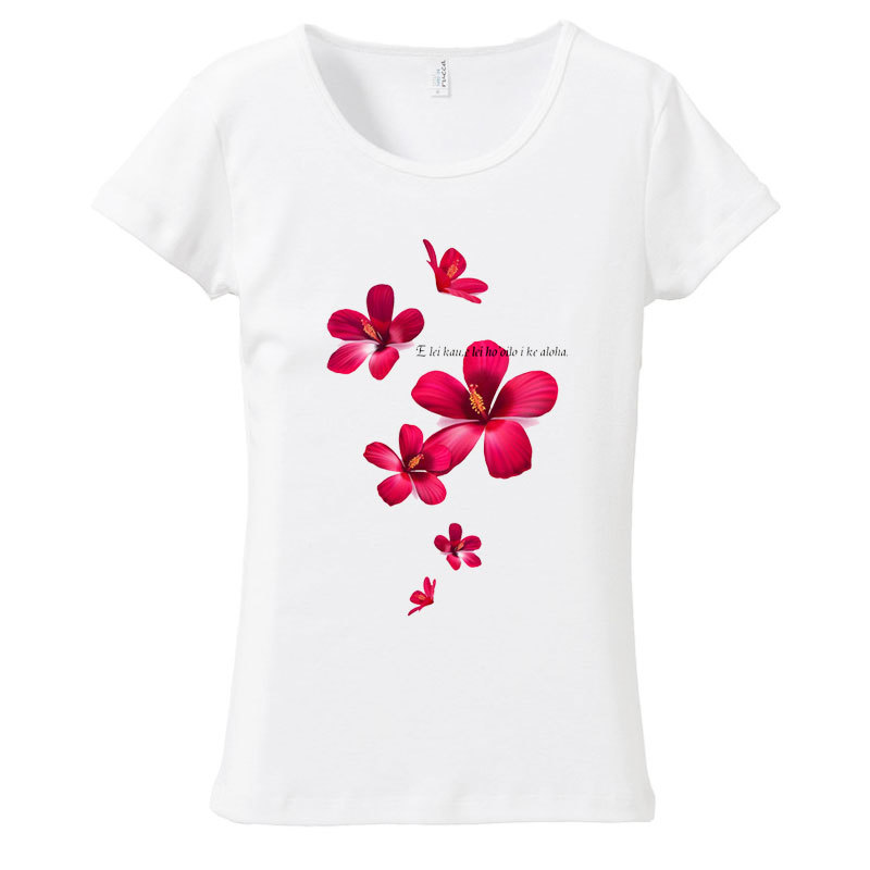 - (L)ホワイト【tf110】ハワイアンフラワープリント*フラダンスメール便発送Tシャツ半袖送料無料ハウラレディース南国夏ロゴカジュアル