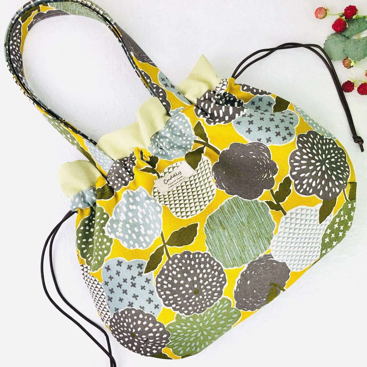 - ,.。*,.お花の巾着グラニーバッグ ハンドメイド 北欧 トートバッグ 肩掛け 巾着トートバッグ 巾着バッグ 花柄