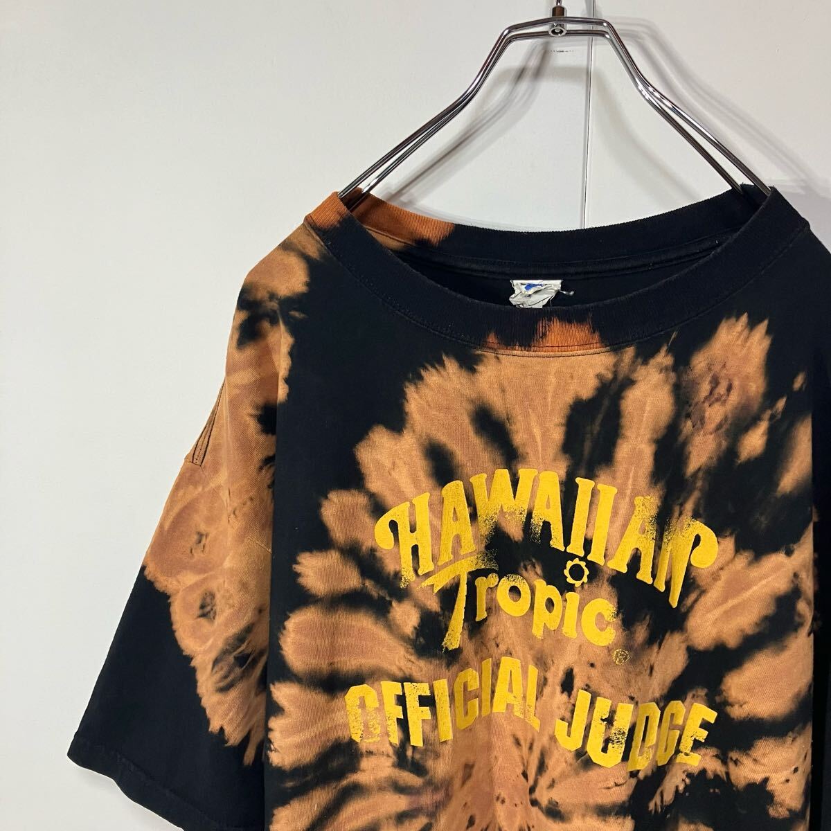 - 古着 アート かすれ プリント クルーネック 半袖 Tシャツ 大きいサイズ 一点物 ブラック オレンジ XL