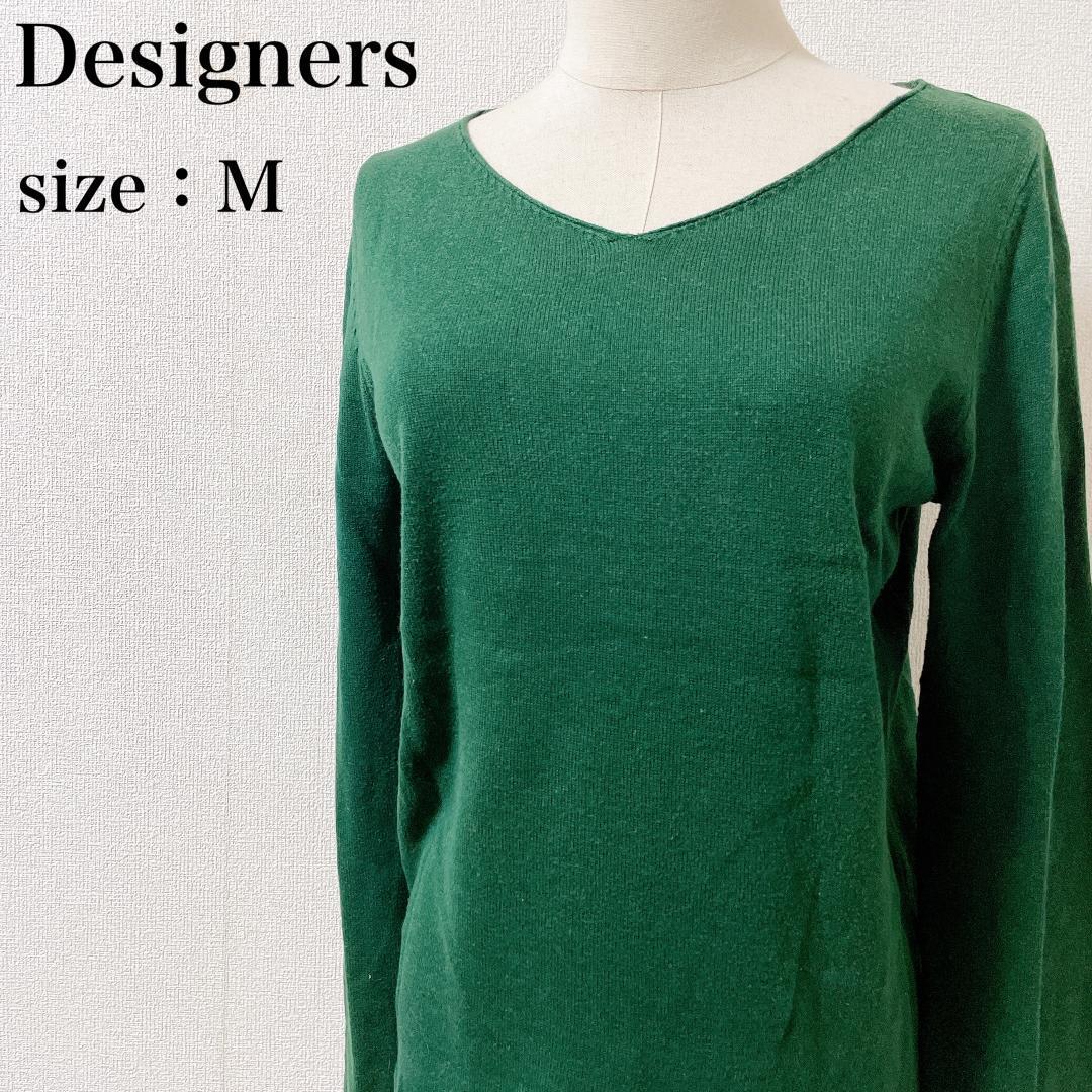 - ハイゲージVネックニットプルオーバー グリーン 長袖 シンプル カジュアル ロングシーズン 着回し抜群 トレンド 古着 ヴィンテージ キ28