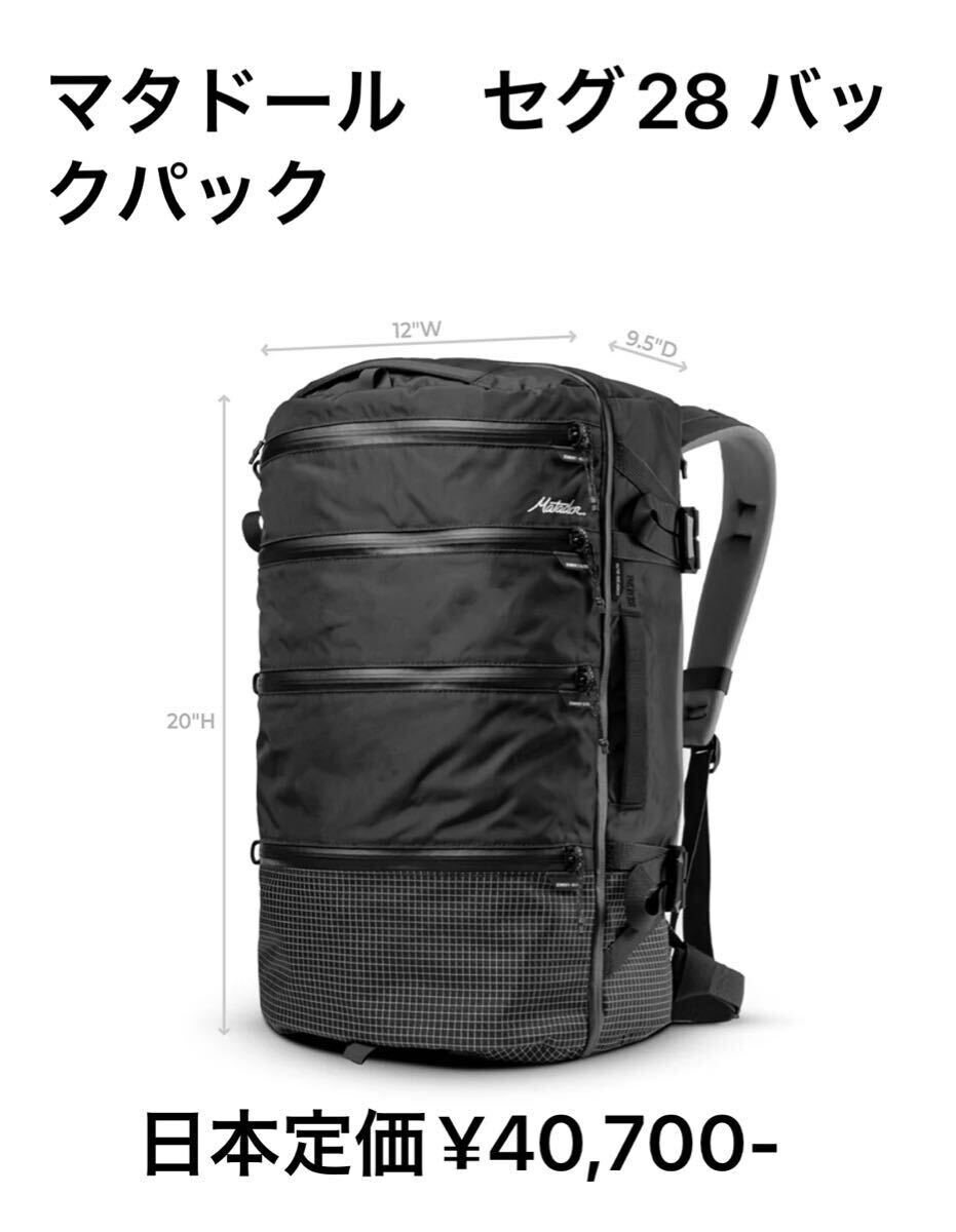 - マタドール セグ28バックパック ブラック 新品 日本定価40,700- 米国直輸入品 白もあります