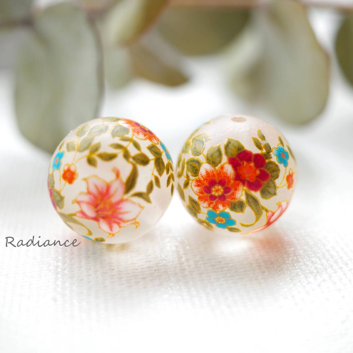 - ☆和風アクリルビーズ☆1.4㎝丸ビーズ☆ハンドメイド素材☆花柄☆かすり透明