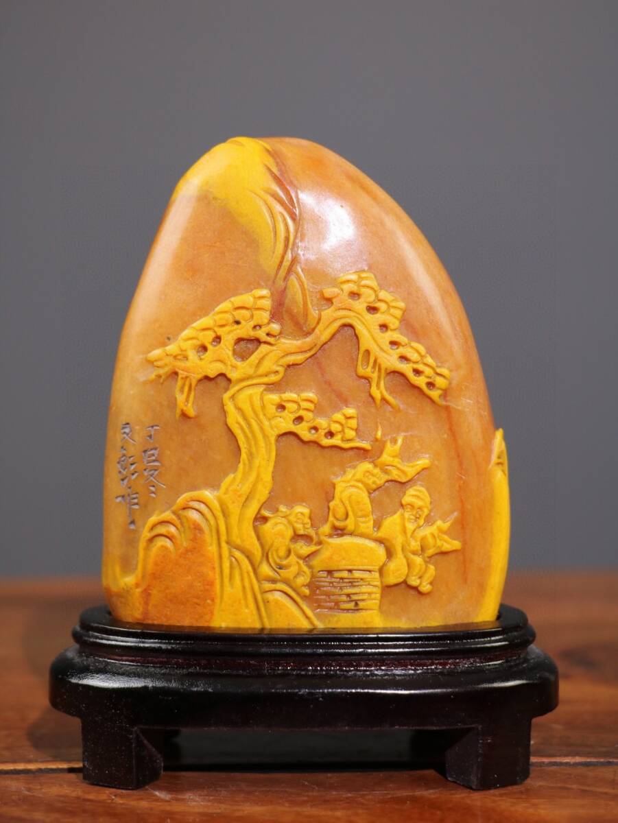 > 『館蔵珍品 寿山石 田黄石 細密彫 松下論道紋印章 印章 印鑒』文房具 書道品 貴重物品 収蔵品 中国古美術 時代物 古董品