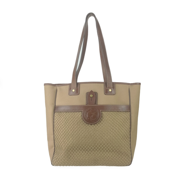 > ハンティングワールド トートバッグ サファリ トゥデイ カーキ系 ブラウン キャンバス レザー ショルダーバッグ【本物保証】