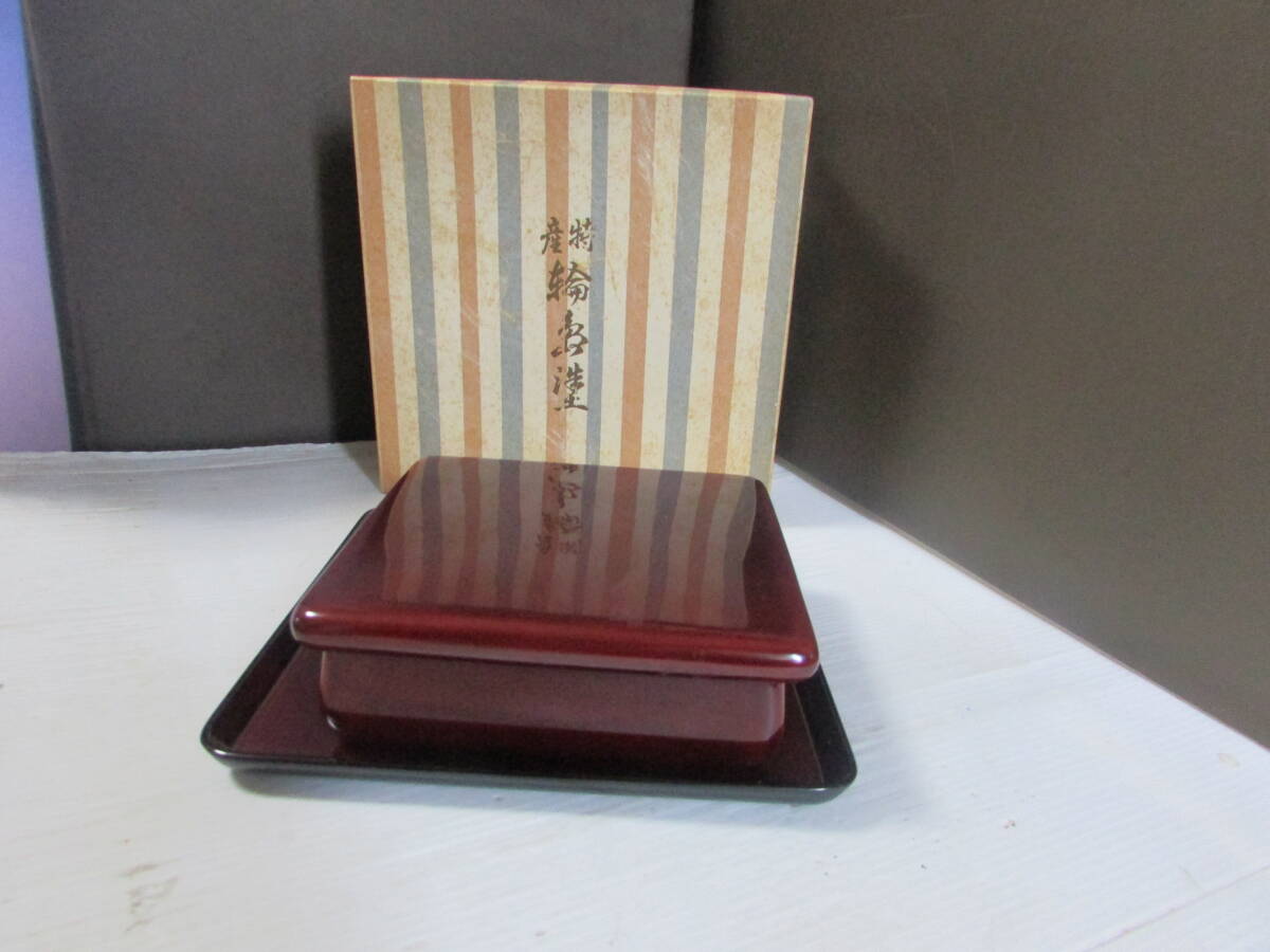 - 輪島塗 木製漆器 留塗 蓋付き菓子器 菓子入 台付 紙箱