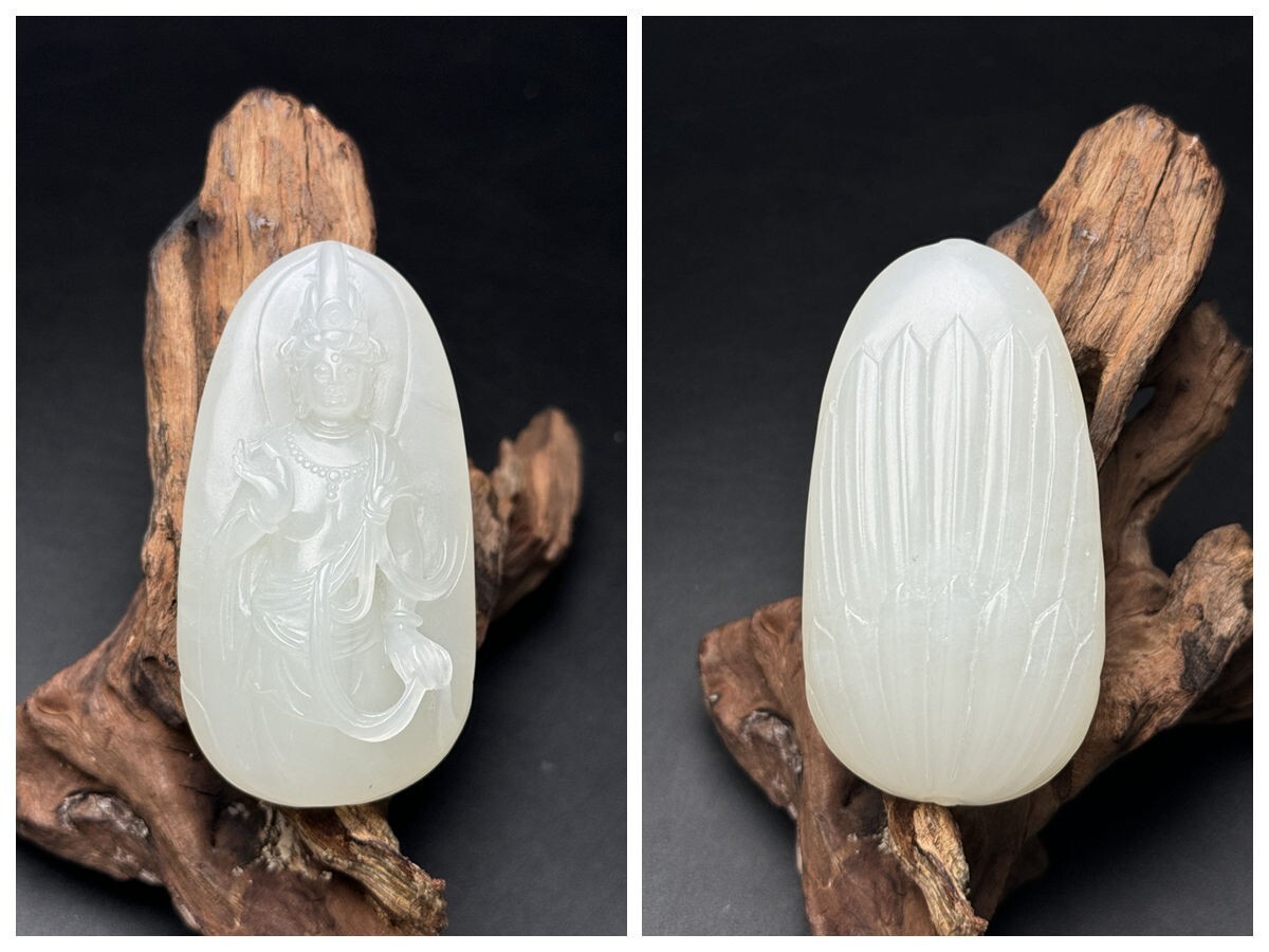 - 時代物 和田玉 白玉彫 大慈大悲 護佑平安 隨形観音 吊墜【仁】極細工 手彫り 裝身具 古賞物 中国古美術 蔵出