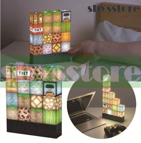 - Custom stitching lampカスタム積み木ランプ USB夜灯 雰囲気ライト 装飾置物 マインクラフト風 DIY照明