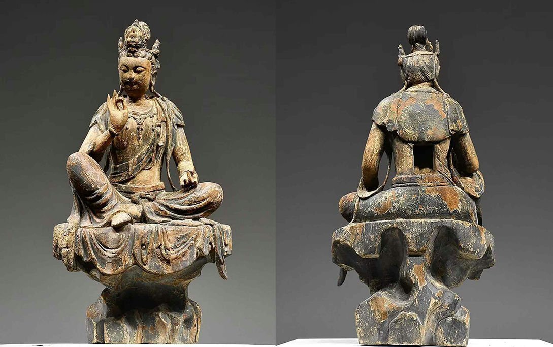 - ■観心・時代旧蔵■R3367明時代 楠木 自在観音像 細工彫刻★仏教古美術★仏像★細密細工★廃寺旧蔵★廃寺買出品