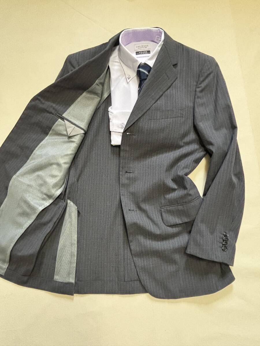 > シングル スーツ【新品同様 未使用に近い極美品】メンズ紳士服 YA6 W78グレー系 ストライプ 細身 ビジネス面接フォーマル就活qkq春夏GEAR